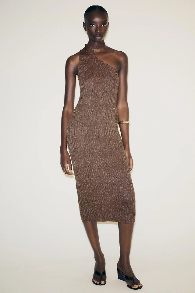 ASYMMETRIC KNIT MIDI DRESS WITH APPLIQUÉ
