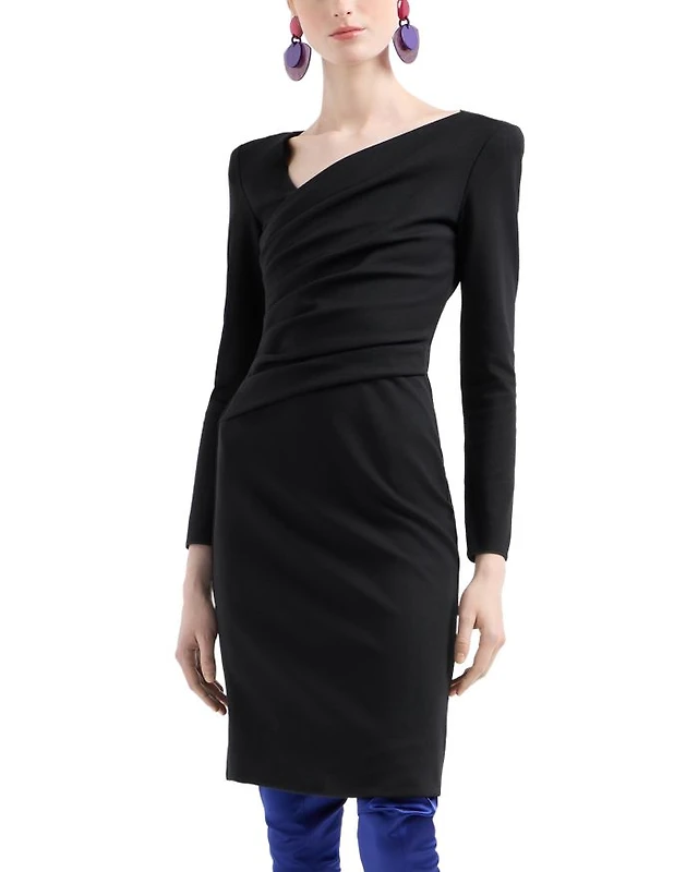 Mac Duggal Women's Ieena Asymmetrical Draped Long Sleeve Mini Dress