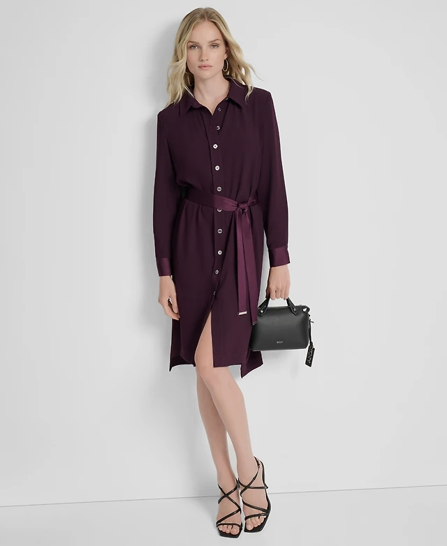 Dkny Women's Long Sleeve Collared Shirt Dress