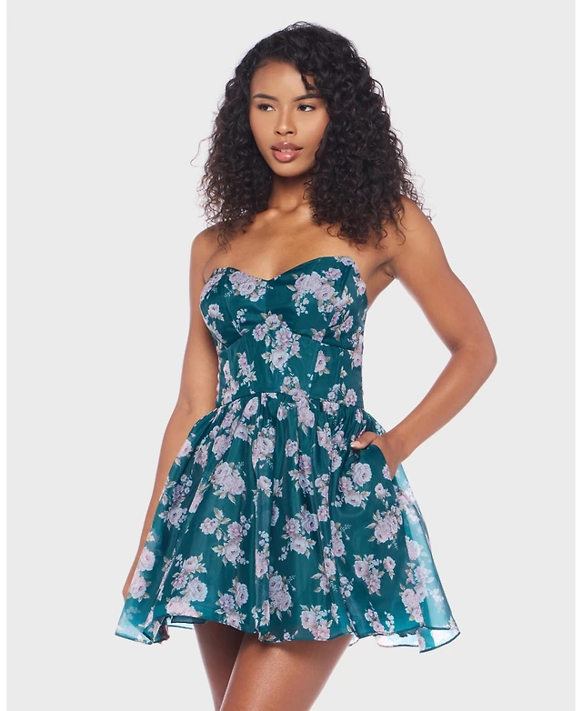 B Darlin Juniors' Floral-Print Ruffled Mini Dress