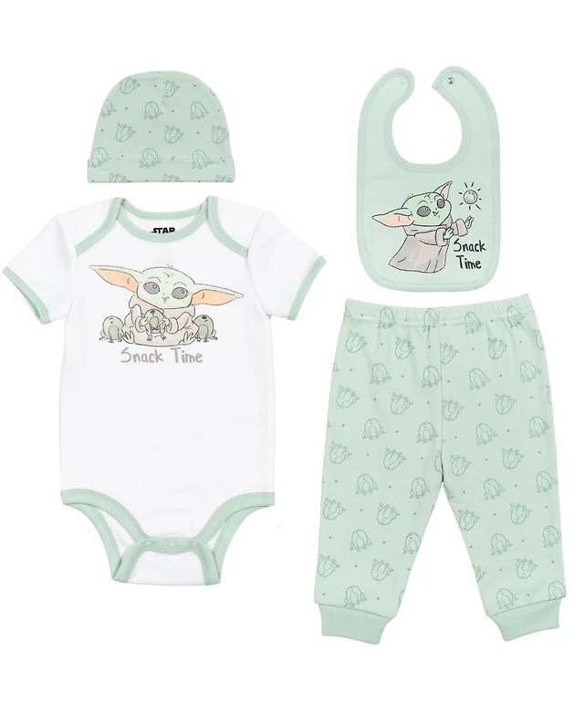 Starwars Baby Boys Star Wars Mandalorian Yoda Layette Set Bodysuit Pant Bib Hat