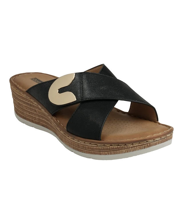 Gc Shoes Women's Miller Cross Strap Flower Slip-On Wedge Sandals