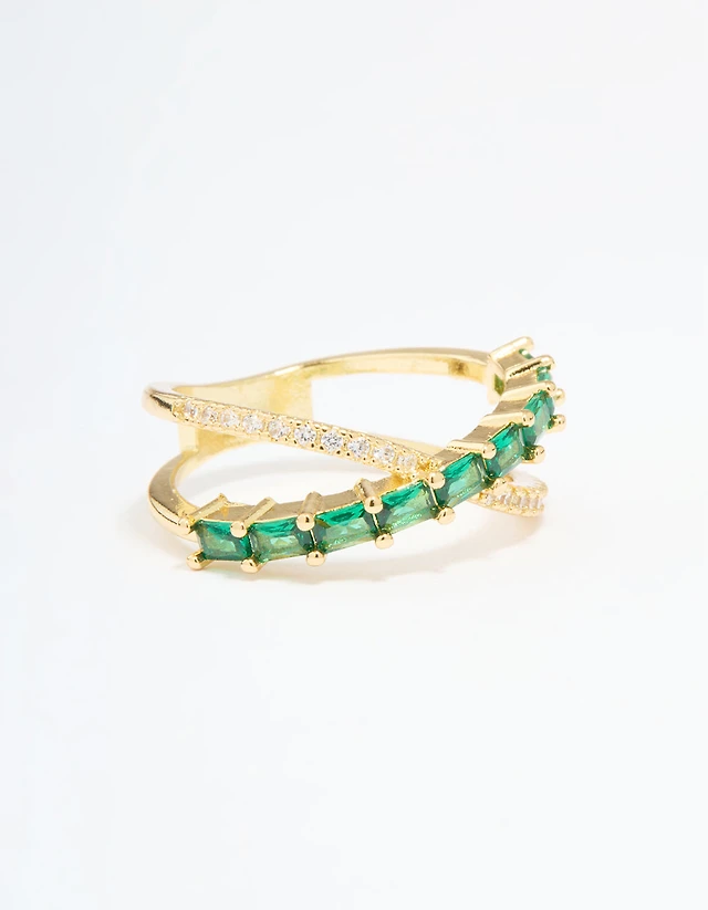 Gold Plated Green Cubic Zirconia Criss Cross Ring