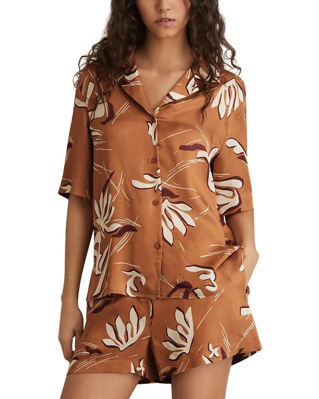 CeCe Women's Floral Bow-Tie V-Neck Button-Up Long Cuff-Sleeve Blouse