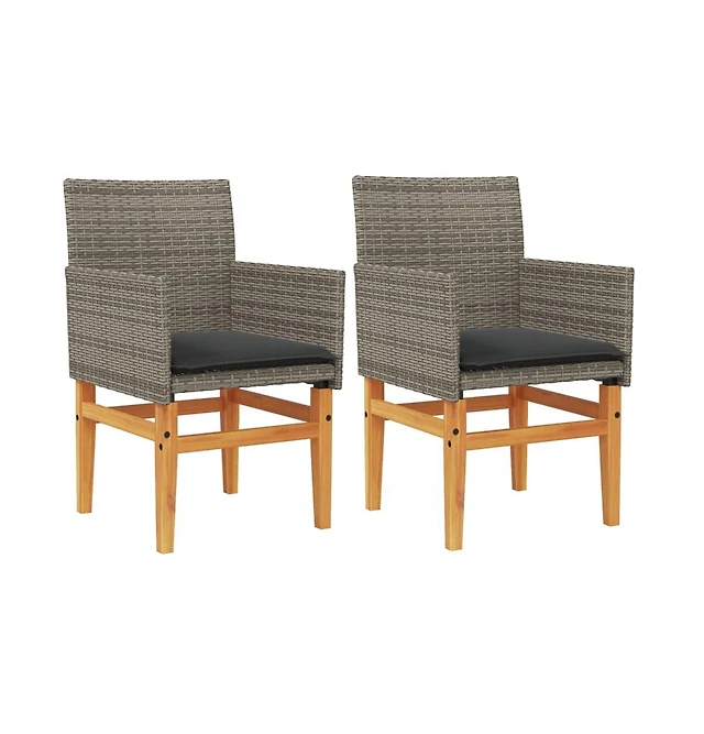 vidaXL Patio Chairs with Cream White Cushions 2 pcs Black Poly Rattan