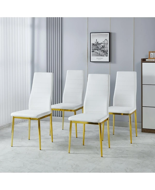Sugift 4 Pieces Pvc Elegant Design Leather Dining Chairs with Solid Metal Legs