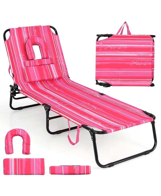 Beach Chaise Lounge Chair with Face Hole Pillows & 5-Position Adjustable Backrest