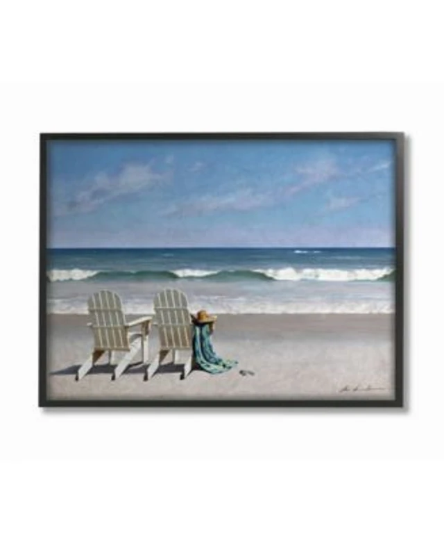 Stupell Industries Two White Adirondack Chairs on The Beach Framed Texturized Art, 16" L x 20" H