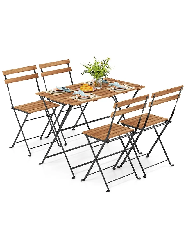 2 Pieces Teak Wood Outdoor Dining Chairs with Slatted Seat
