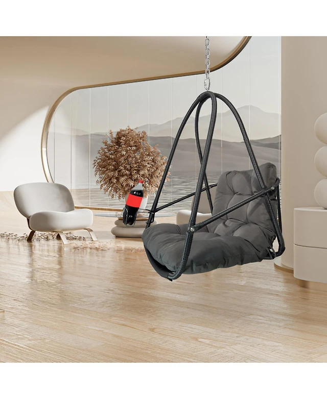 Flynama 60 Inch Two-Person Wicker Egg Chair with Stand and Cushions