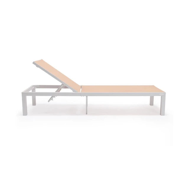 LeisureMod Marlin Patio Chaise Lounge Chair With White Aluminum Frame