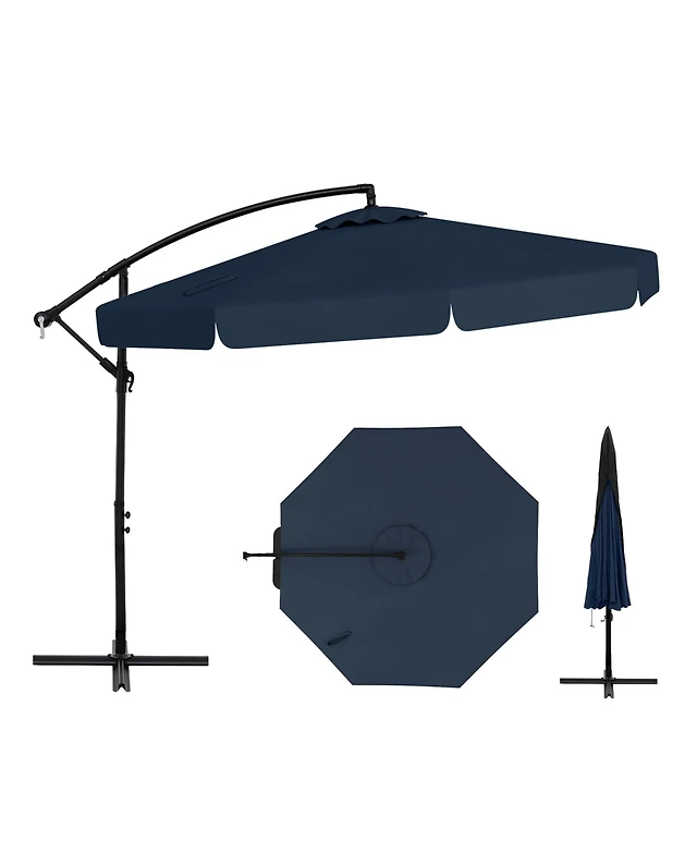 10' Hanging Umbrella Patio Sun Shade Offset Outdoor Market W/ Cross Base