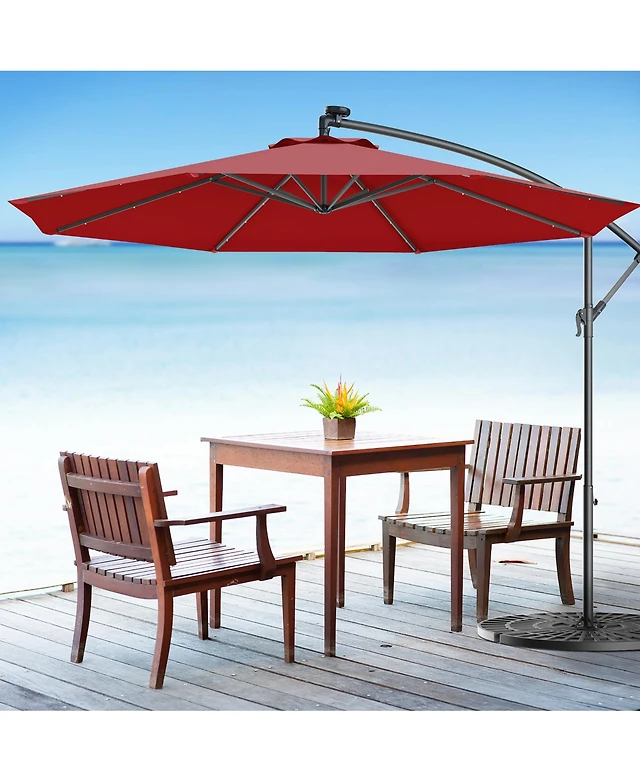 Outdoor Steel Cantilever Offset Patio Umbrella with Solar Led Lights, Air Vent, Crank, and Base - 9'