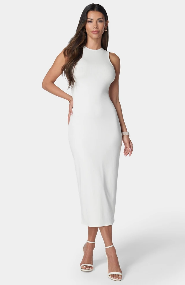Bebe Women's Short Sleeve Midi T-Shirt Rib Dress