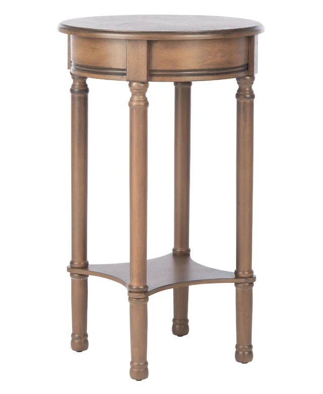 Sugift 2-Tier Round End Table with Storage Shelf and Solid Rubber Wood Legs