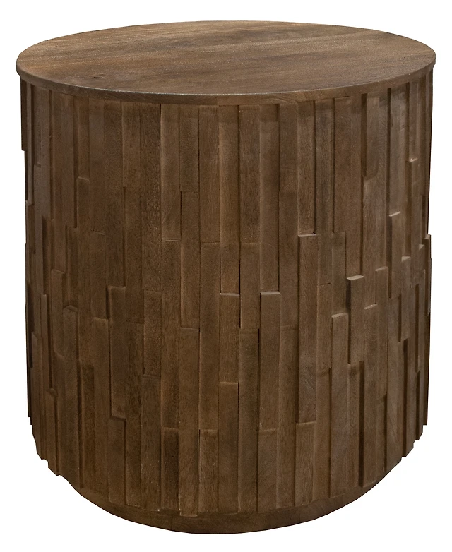 Rosemary Lane Mother of Pearl Drum Accent Table with Linear Mosaic Pattern and Gold Base