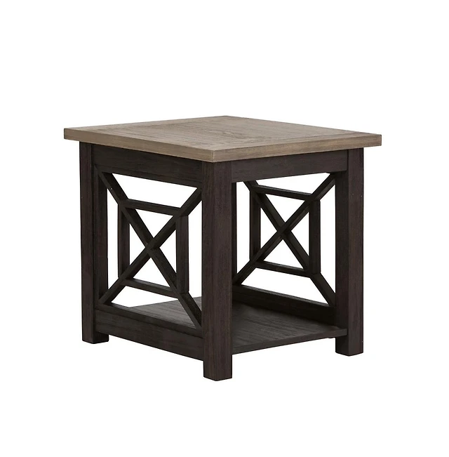 Alaterre Furniture Coventry Wood End Table with Tray Shelf and Bottom Shelf