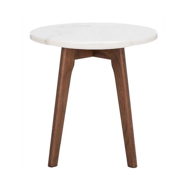 LuxenHome Burl Wood Finish Manufactured Wood 17.7-Inch Tall Round End and Side Table with Faux Marble Top