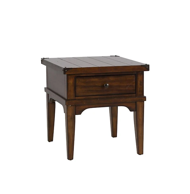 Alaterre Furniture Claremont Rustic Wood End Table with Drawer and Low Shelf