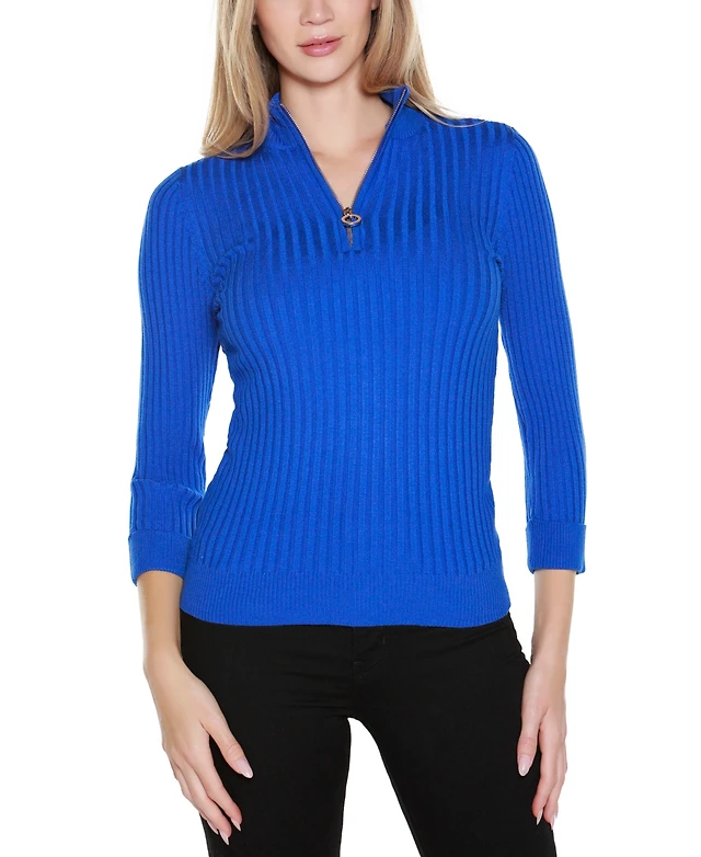 Belldini Black Label Women's Ribbed Quarter-Zip Sweater