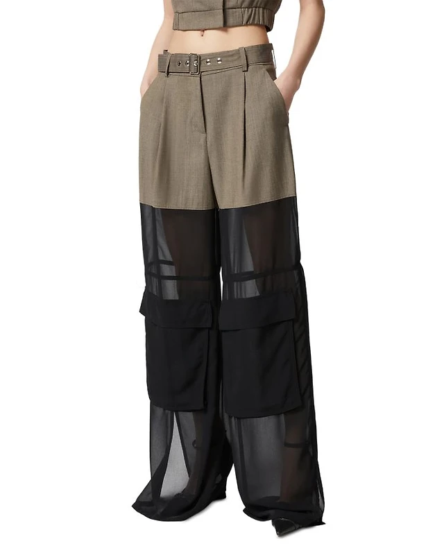 Satin Charmeuse Wide-Leg Cargo Pant