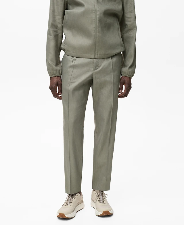 Slim-fit pleated linen pants