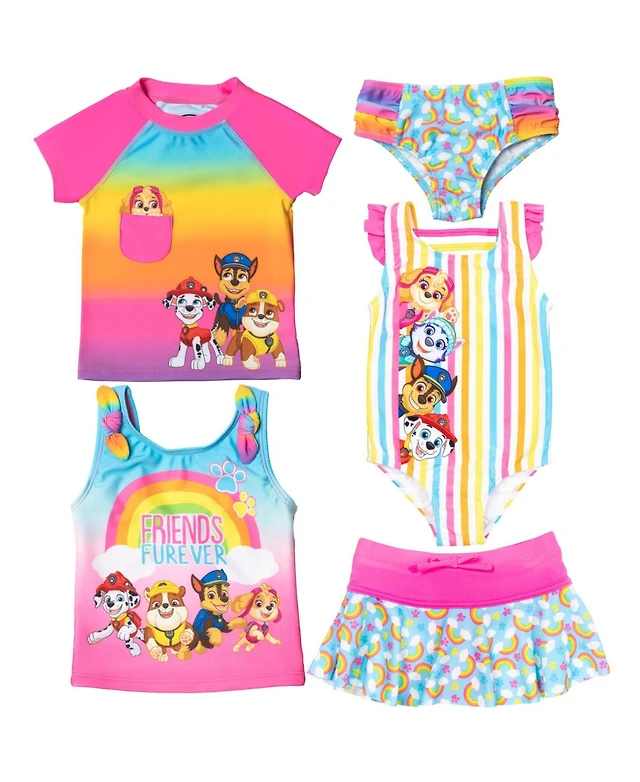 Paw Patrol Toddler Girls One Piece Bathing Suit Rash Guard Tankini Top Bikini Bottom and Skort 5 Swimsuit Set