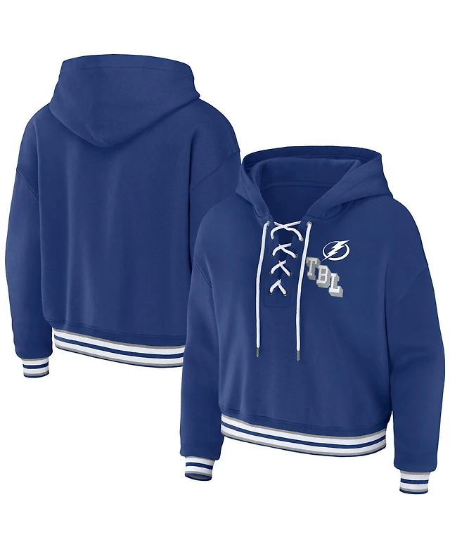 Women's Wear by Erin Andrews Blue Tampa Bay Lightning Lace-Up Pullover Hoodie