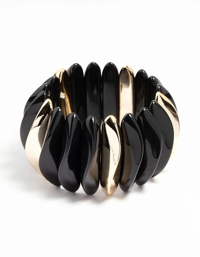Black Beads Gold Plated Textured Bead Bracelet Stack