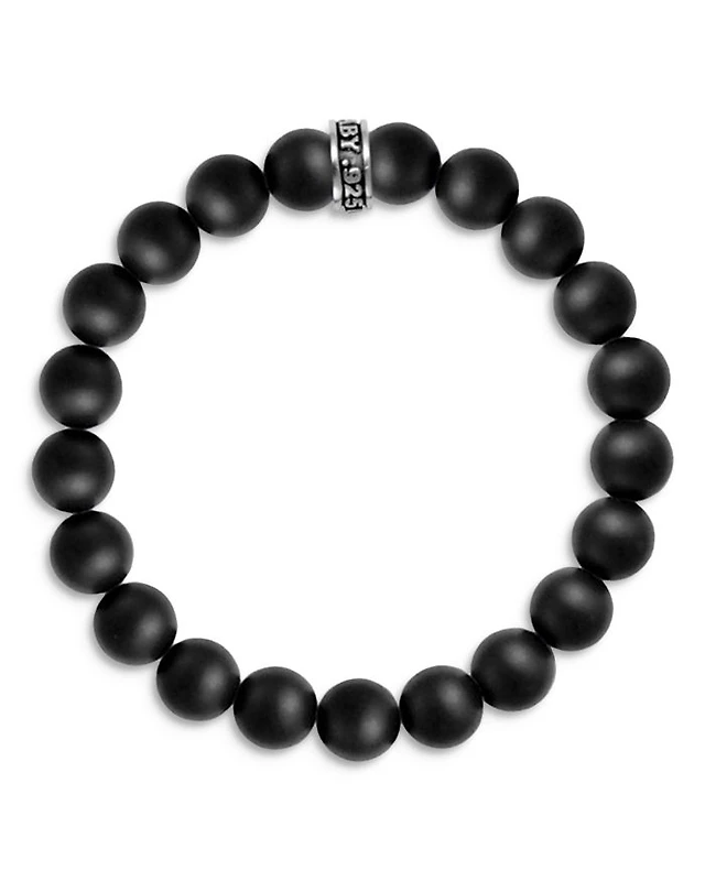 Men's Sterling Silver Anthem Black Beaded Bracelet - Exclusive