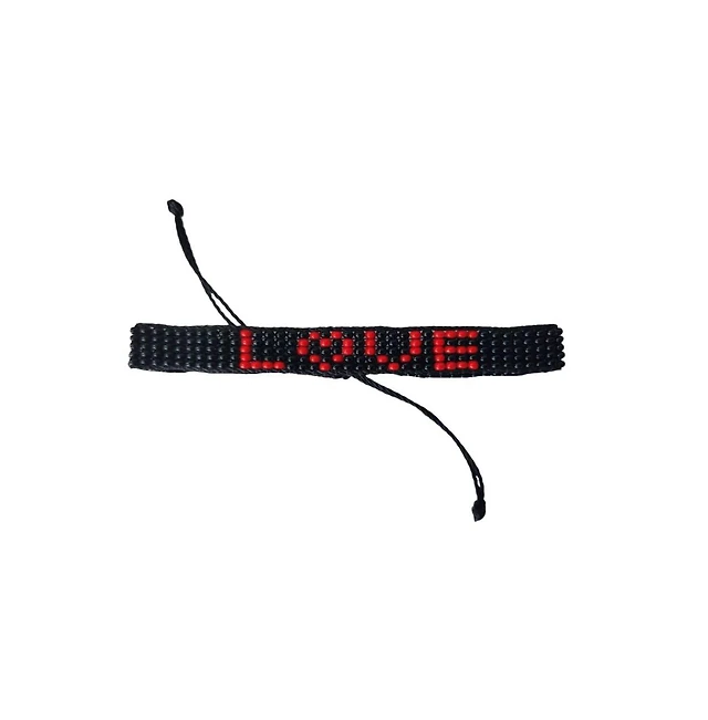 Love Hand Beaded Bracelet | Red and Black Glass Beads