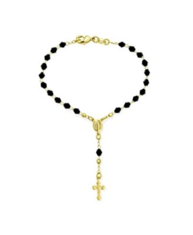 Bling Jewelry Christian Rosary Bead Bracelet Black Beads Virgin Mary Crucifix 18k Gold 7 7.5 Inch