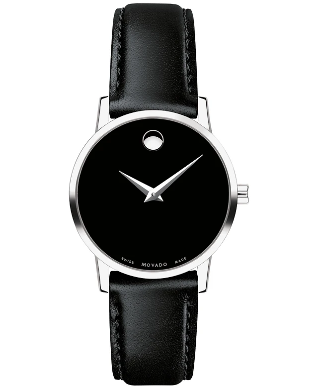 Movado Women's Swiss Museum Classic Black Leather Strap Watch 28mm