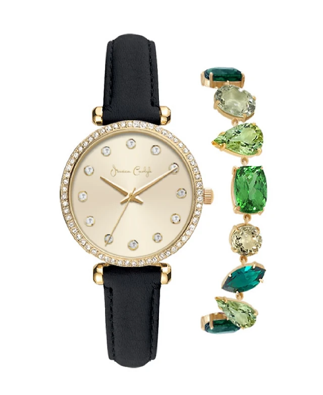 Jessica Carlye Women's Quartz Movement Black Leather Strap Analog Watch, 38mm with Hair Pin Set