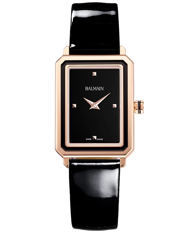 Peugeot Women's 20mm Square Watch with Glossy Black Leather Strap