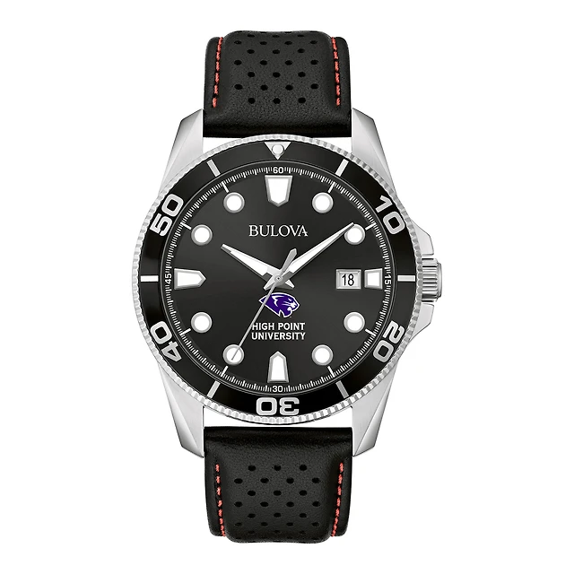 Men's Bulova Black High Point Panthers Corporate Collection Leather Strap Watch