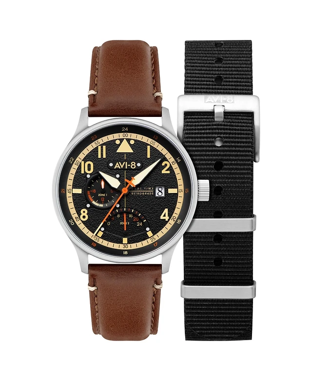 Avi-8 Men's Hawker Hunter Atlas Dual-Time Chronograph Solid Stainless Steel Bracelet Watch