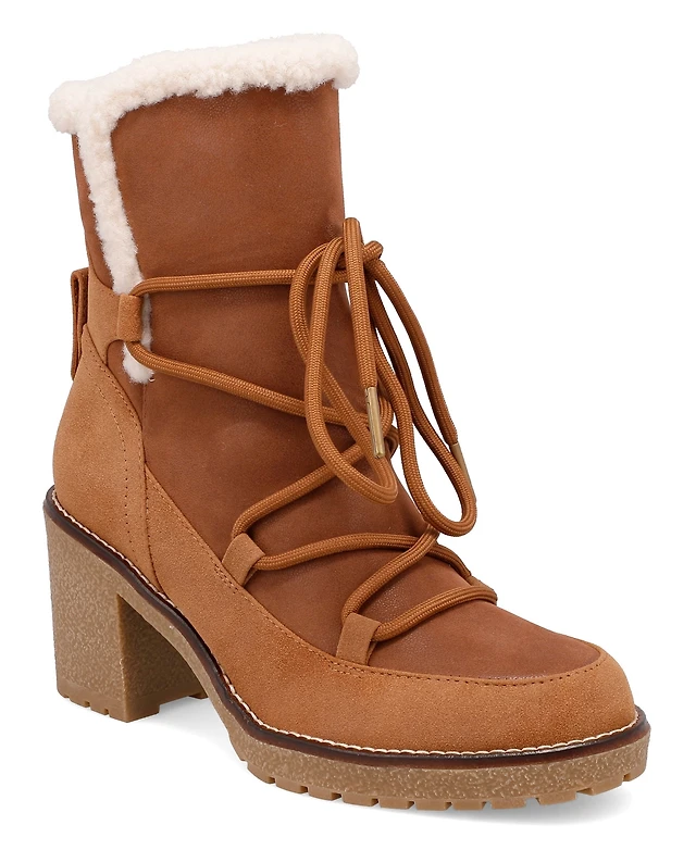 Mia Women's Holiday Cold Weather Sherpa Lace Up Block-Heel Booties