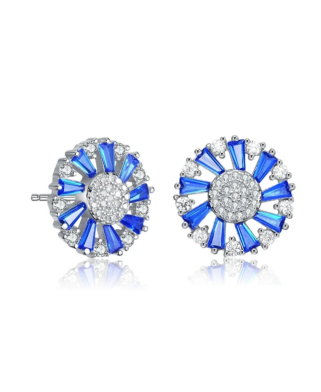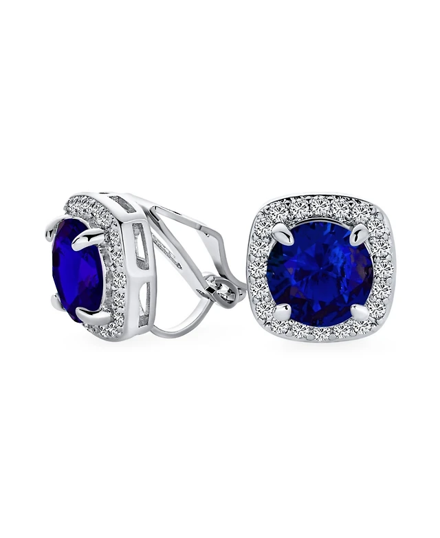 Macy's Blue Topaz (2-1/3 ct. t.w.) and Diamond (1/5 ct. t.w.) Halo Studs in Sterling Silver