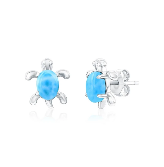 Sterling Silver, Turtle Larimar Studs
