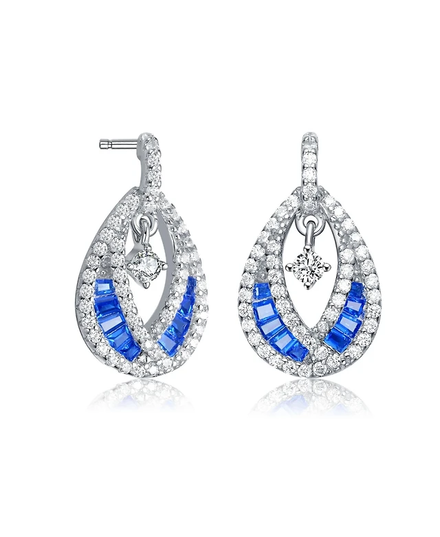 Sterling Silver 14K Gold Plated, 18K Rose Plated and White Red Baguette Clear Round Cubic Zirconia Pear Drop Earrings