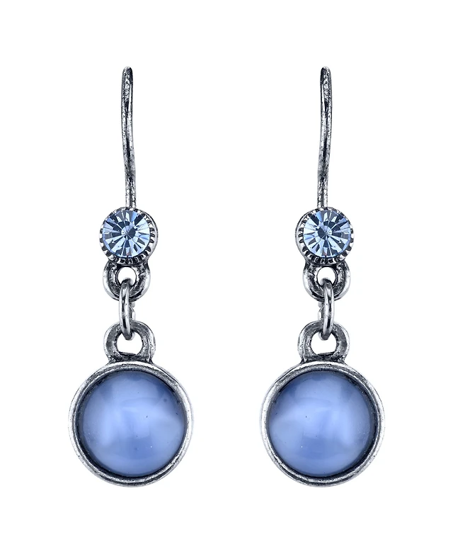 2028 Silver-Tone Genuine Stone Turquoise Round Stone Hoop Earrings