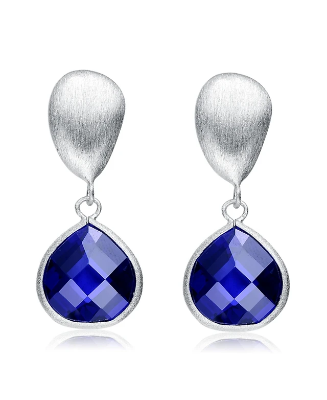 Blue Crystal Pave Elongated Teardrop Earrings Sterling Silver