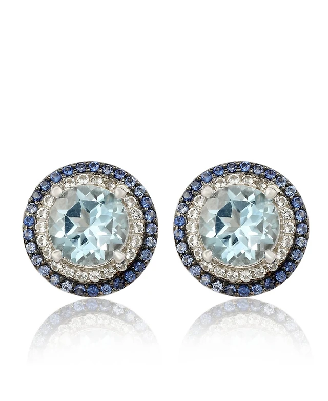 Suzy Levian Sterling Silver Round Cut Topaz And Double Halo Stud Earrings