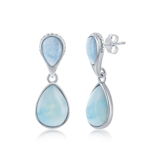 Caribbean Treasures Sterling Silver Teardrop Larimar Earrings