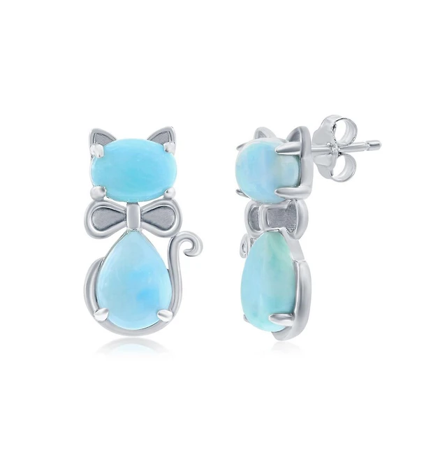 Sterling Silver Larimar Cat Stud Earrings