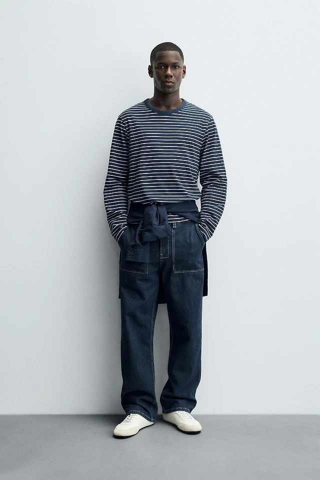 Long Staple Cotton Vertical Stripe U-Neck Base Top