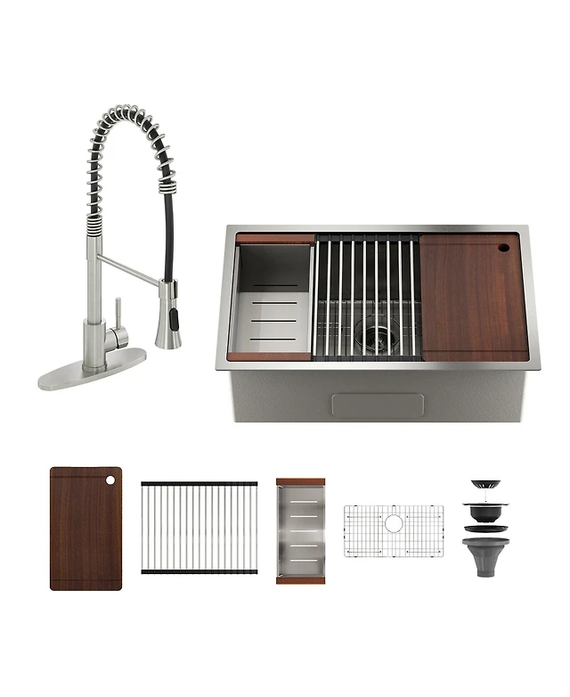 33''x 22'' Stainless Steel Kitchen Sink and Pull-Down Kitchen Faucet Set with Cutting Board, Roller Blind, Drain Basket