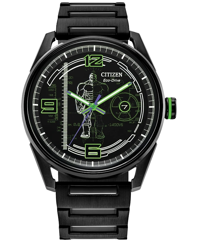 Marvel by Citizen Hulk Silver-Tone Stainless Steel Bracelet Watch 43mm