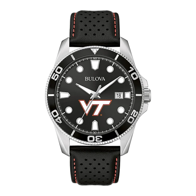 Men's Bulova Black West Virginia Mountaineers Corporate Collection Leather Strap Watch